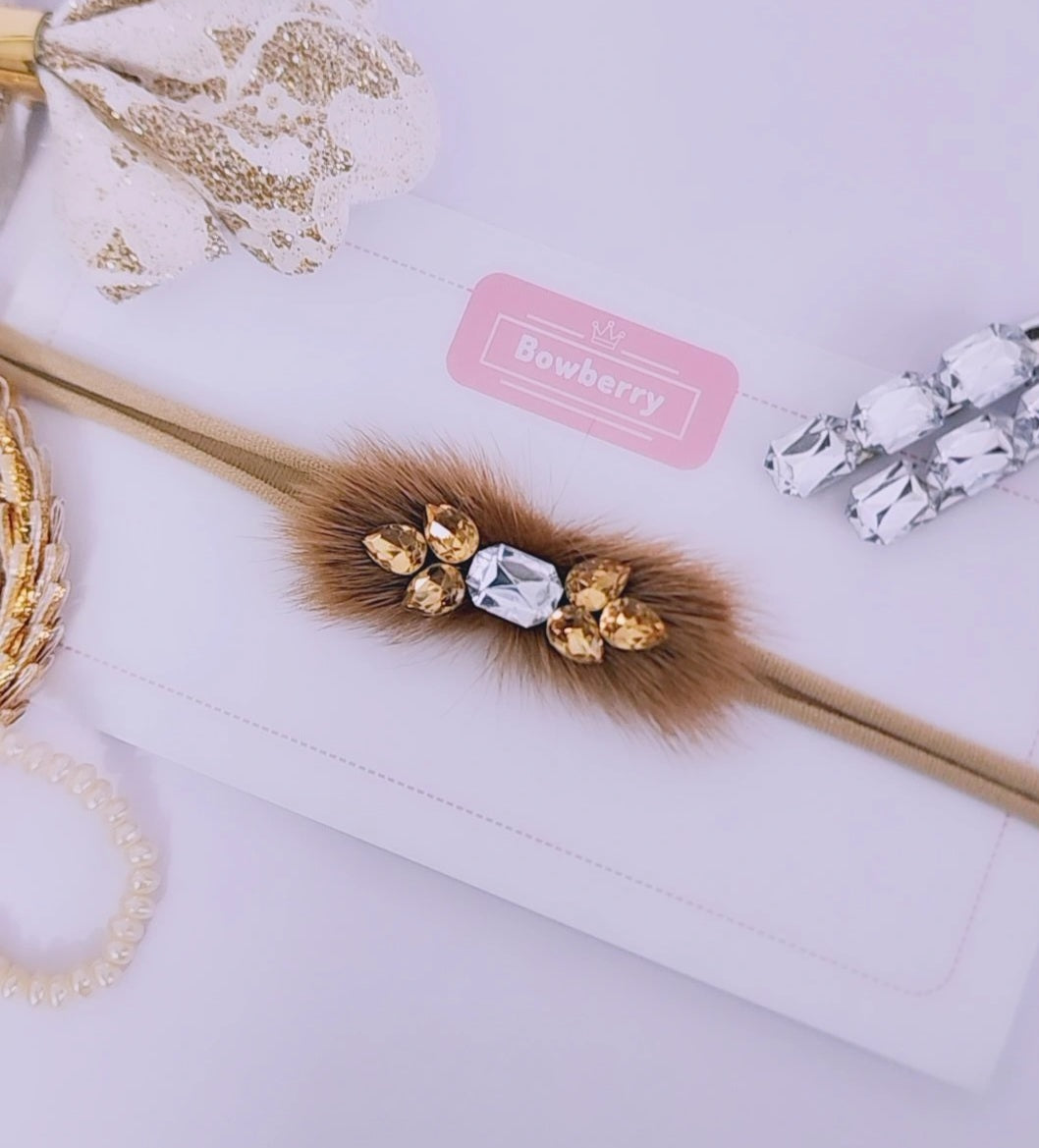 Wrap your baby in pure enchantment with our Gemstone-Studded Furry Headband, a gemstone-studded piece delicately set on a soft fur headband. Crafted with love and care, this charming accessory adds a touch of whimsical elegance to your baby's look.